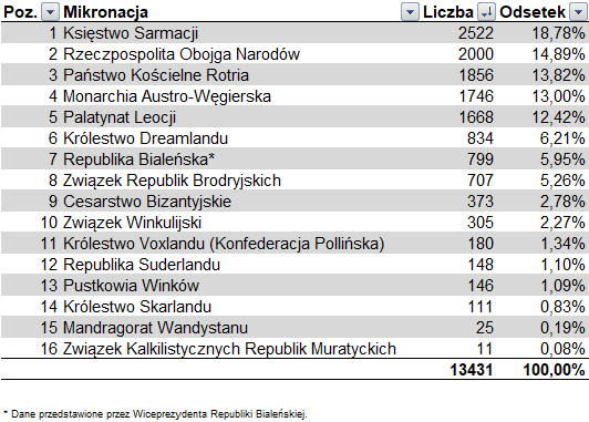 Nowy ranking aktywności mikronacji
